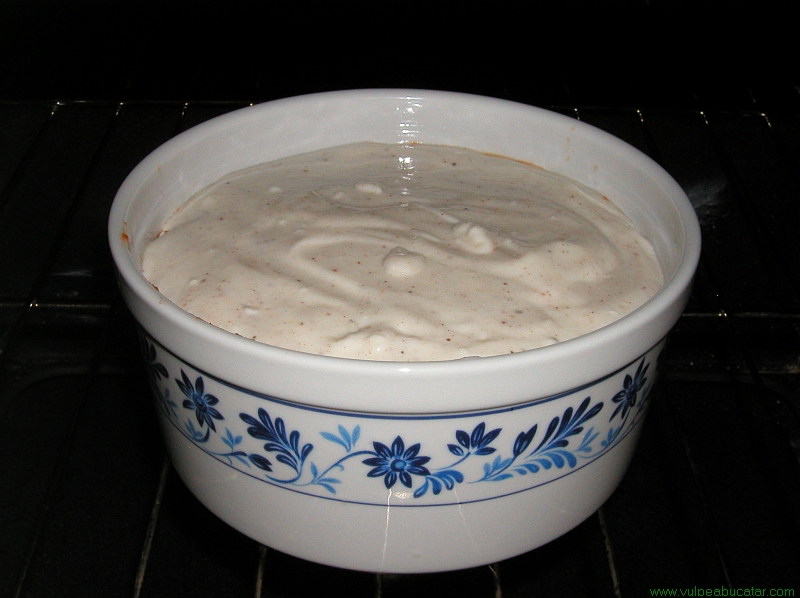 Într-un castronel se amestecă iaurtul cu nucşoara.5