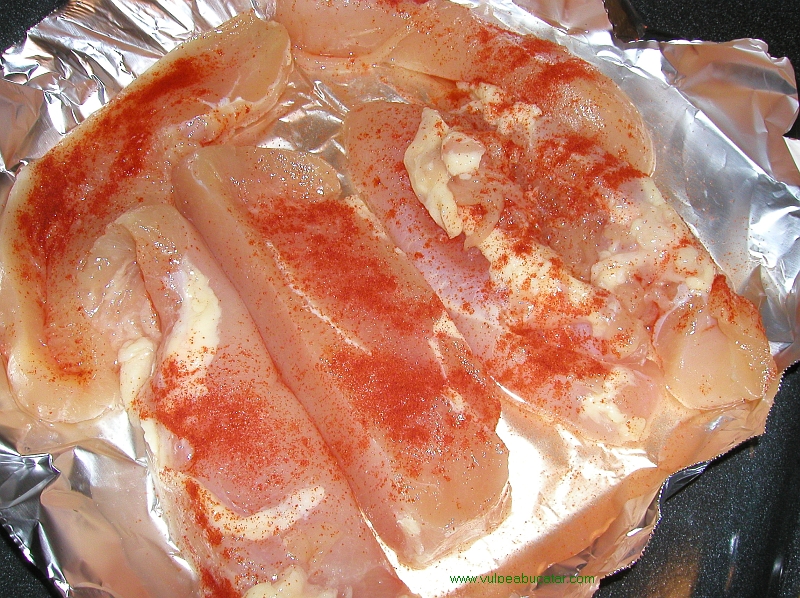 Se taie puiul în 6-8 bucati şi se tăvăleşte prin boia. Se pune într-o tavă cu puţină apă. Se dă la cuptor 30 de minute, la foc mare sau chiar la broiler până se rumeneşte. Dacă preferaţi il puteţi prăji în ulei sau unt.2