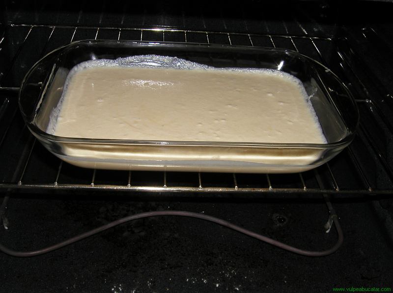 Compozitia se pune intr-o tava unsa cu unt sau ulei si tapetata cu faina.4